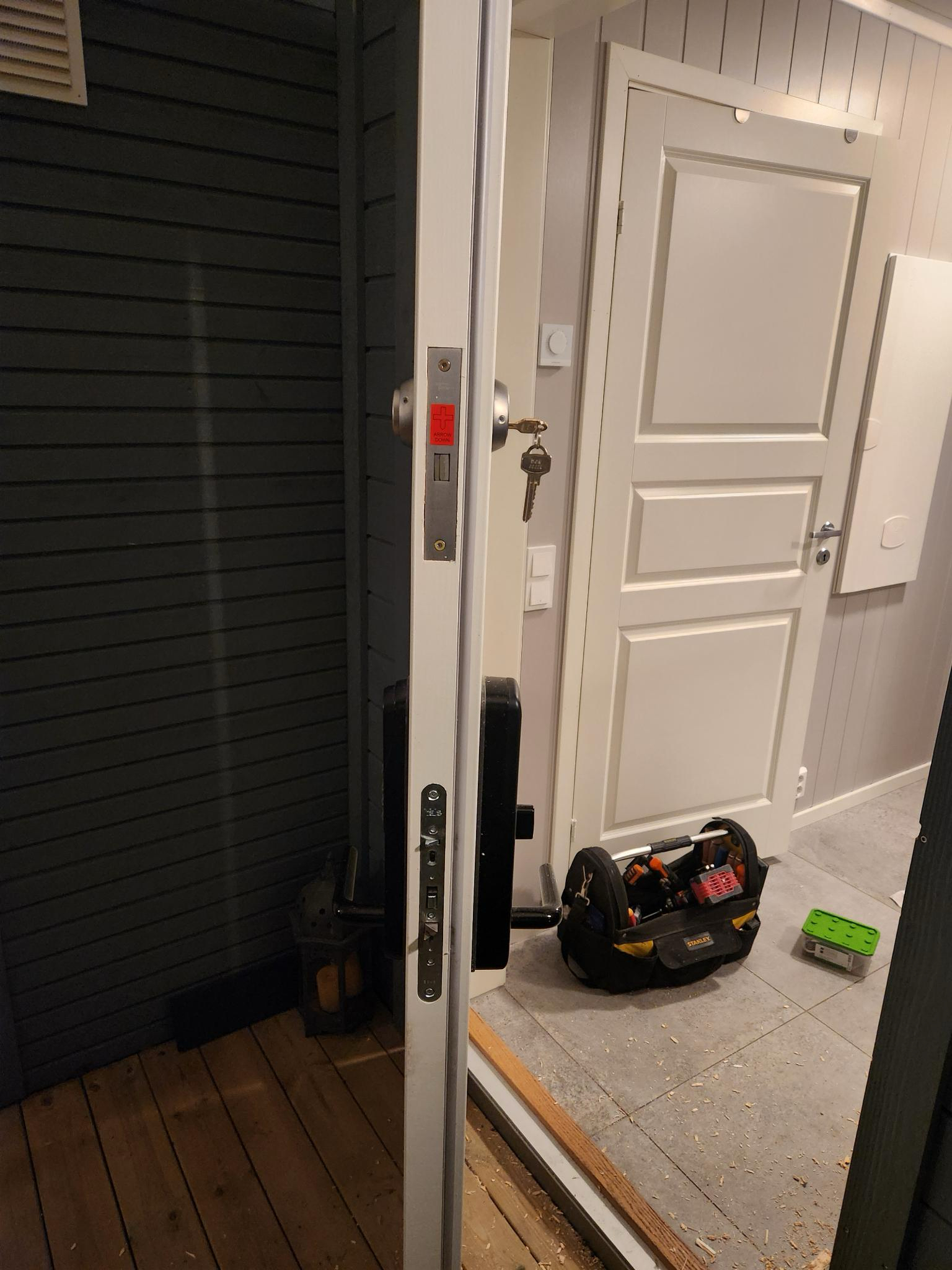 😓 Diverse utfordringer, fordi døren ikke er optimal for montering av kodelås.